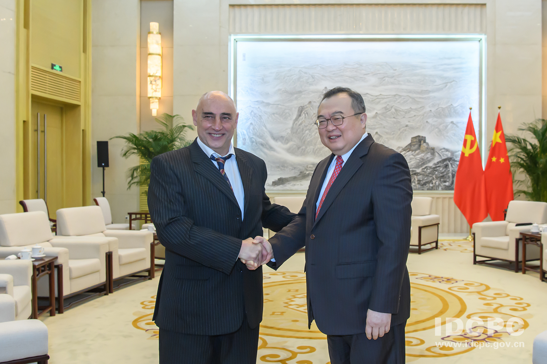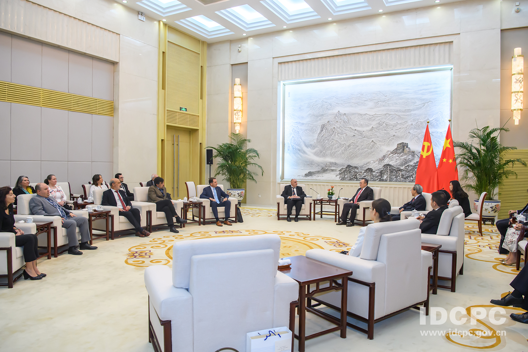 7月23日,中共中央对外联络部部长刘建超在北京会见由总协调员戈塔率领的乌拉圭广泛阵线干部考察团。