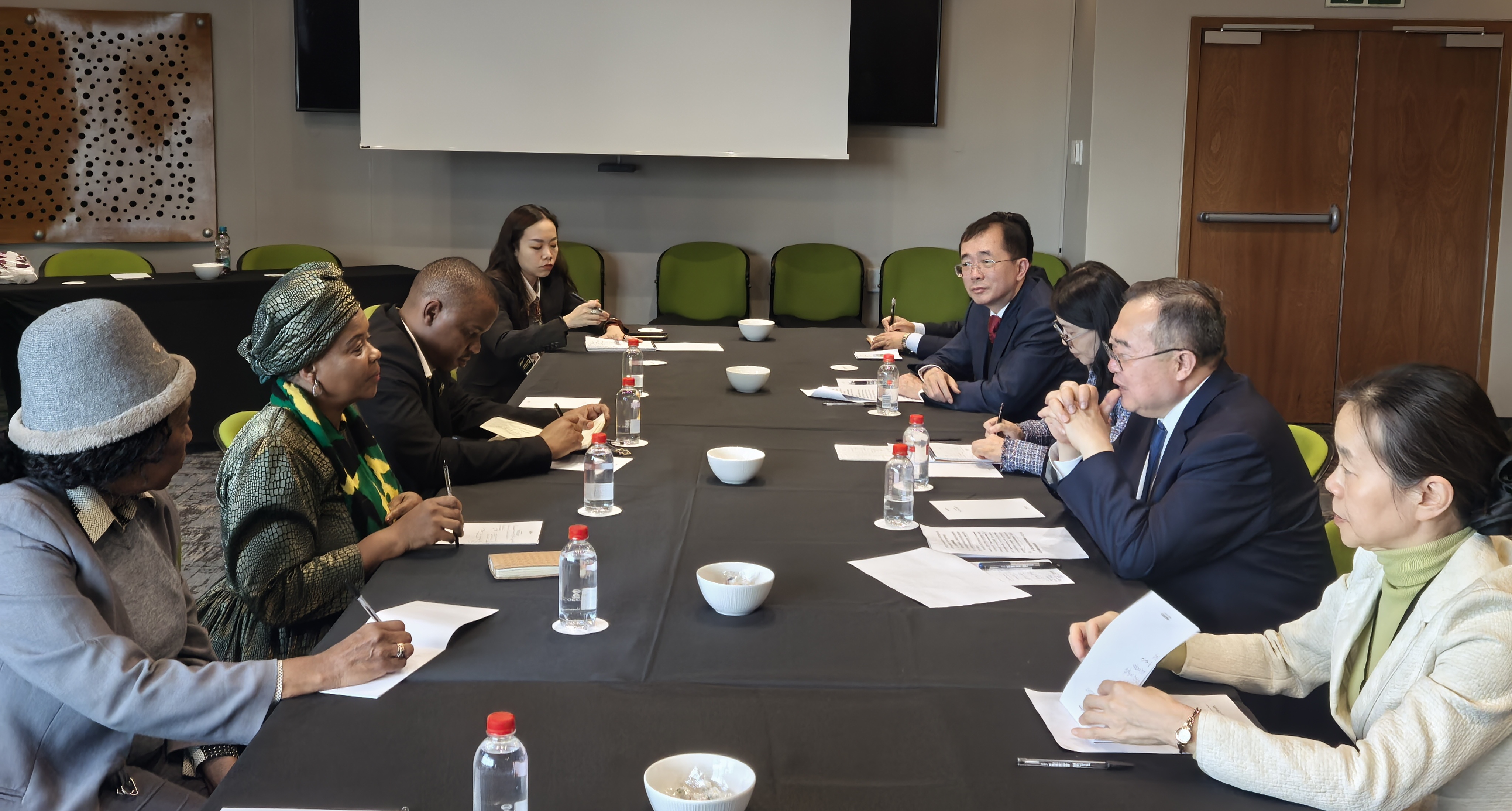 当地时间7月26日,中联部部长刘建超在约翰内斯堡出席解放运动峰会期间会见南非非国大总司库拉莫豪帕。