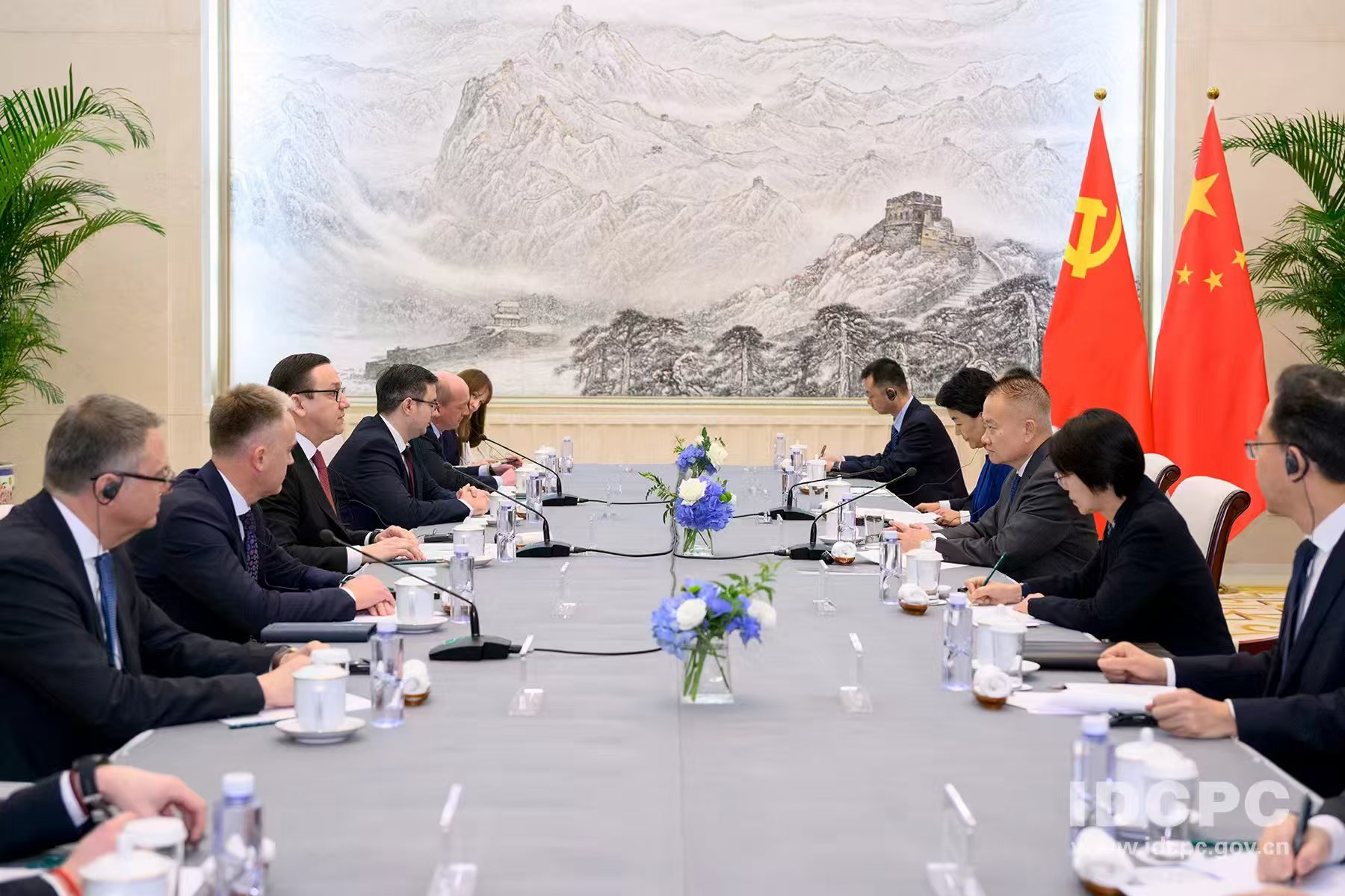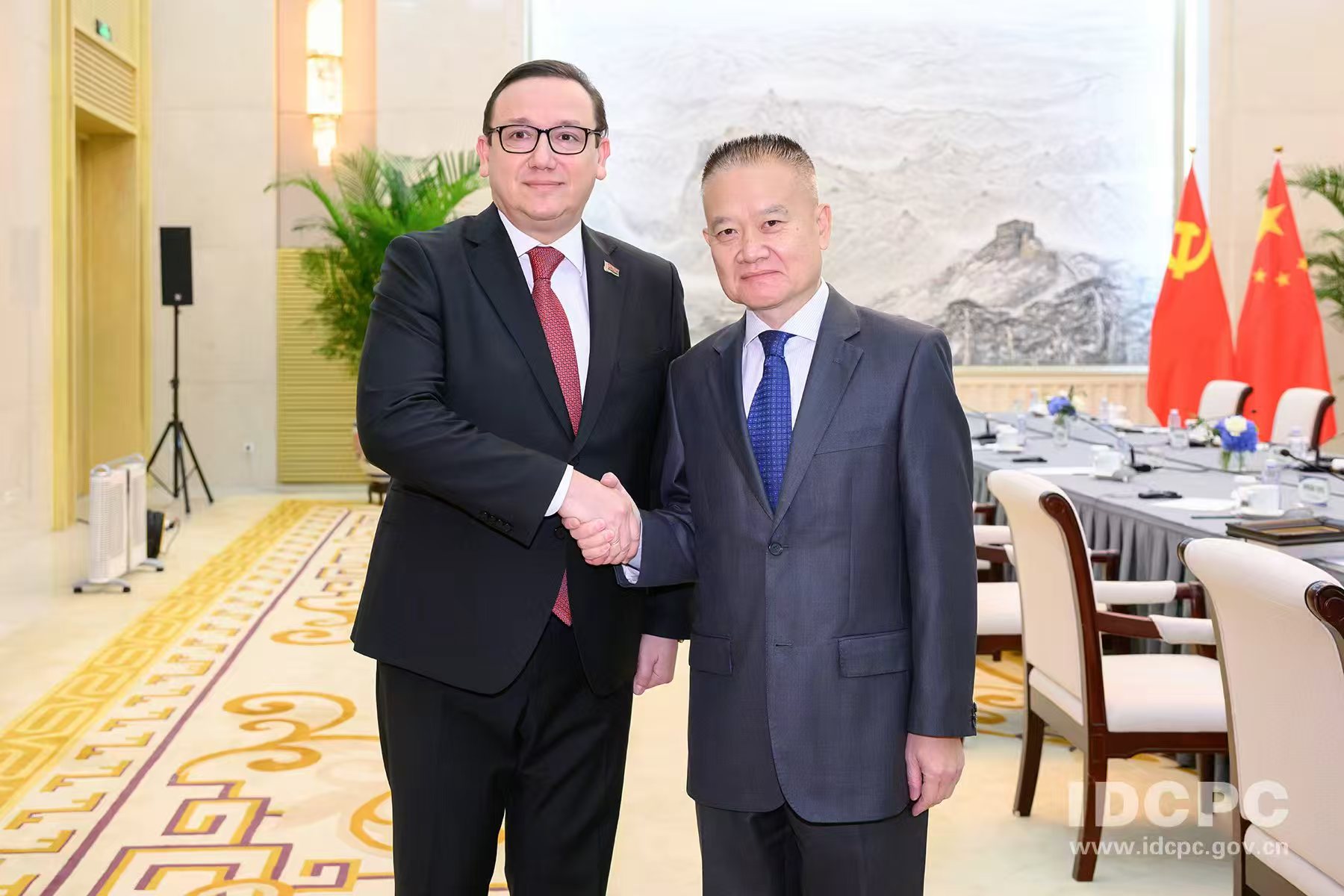 中联部副部长孙海燕、白俄罗斯驻华大使切尔维亚科夫等参加会见。