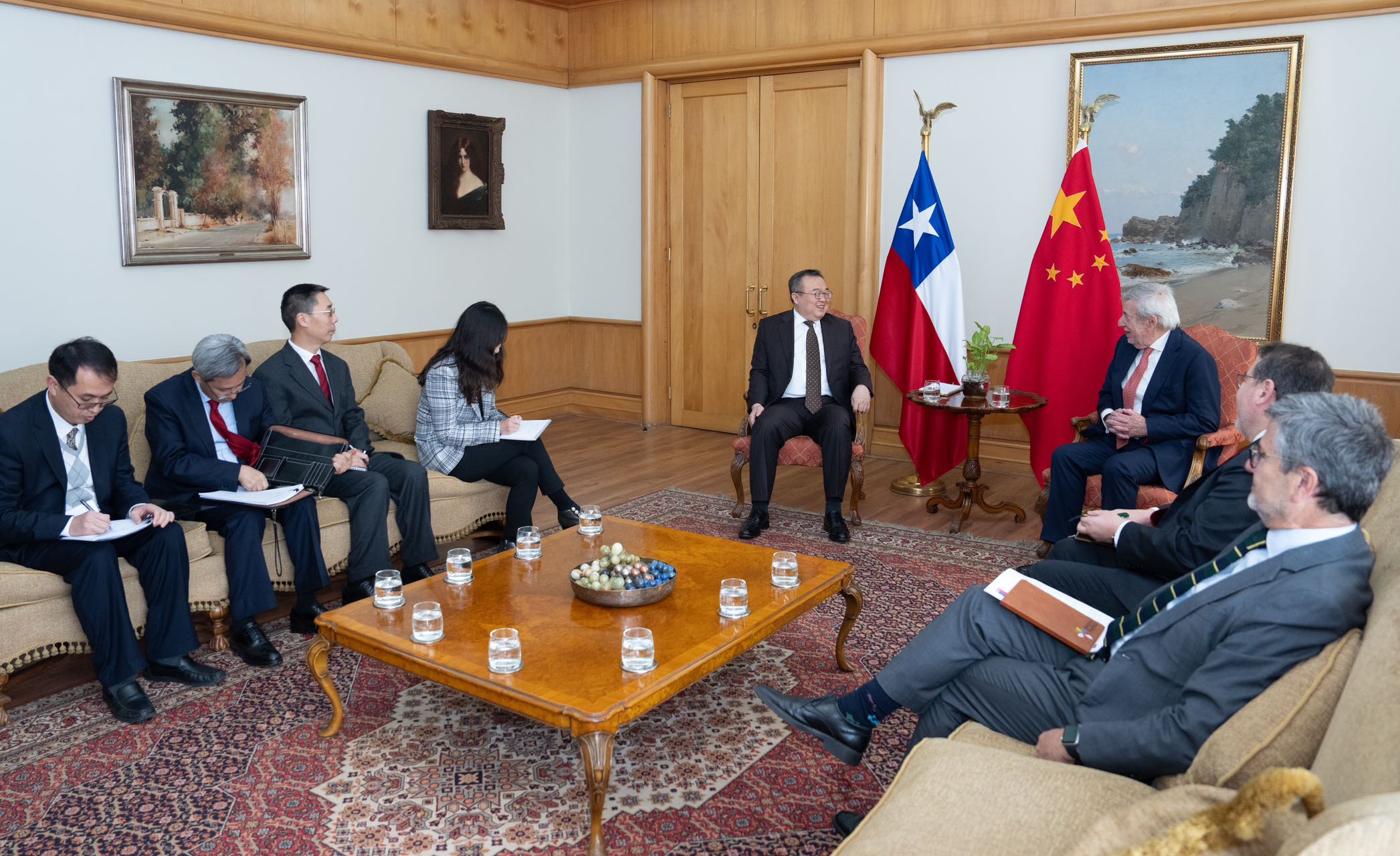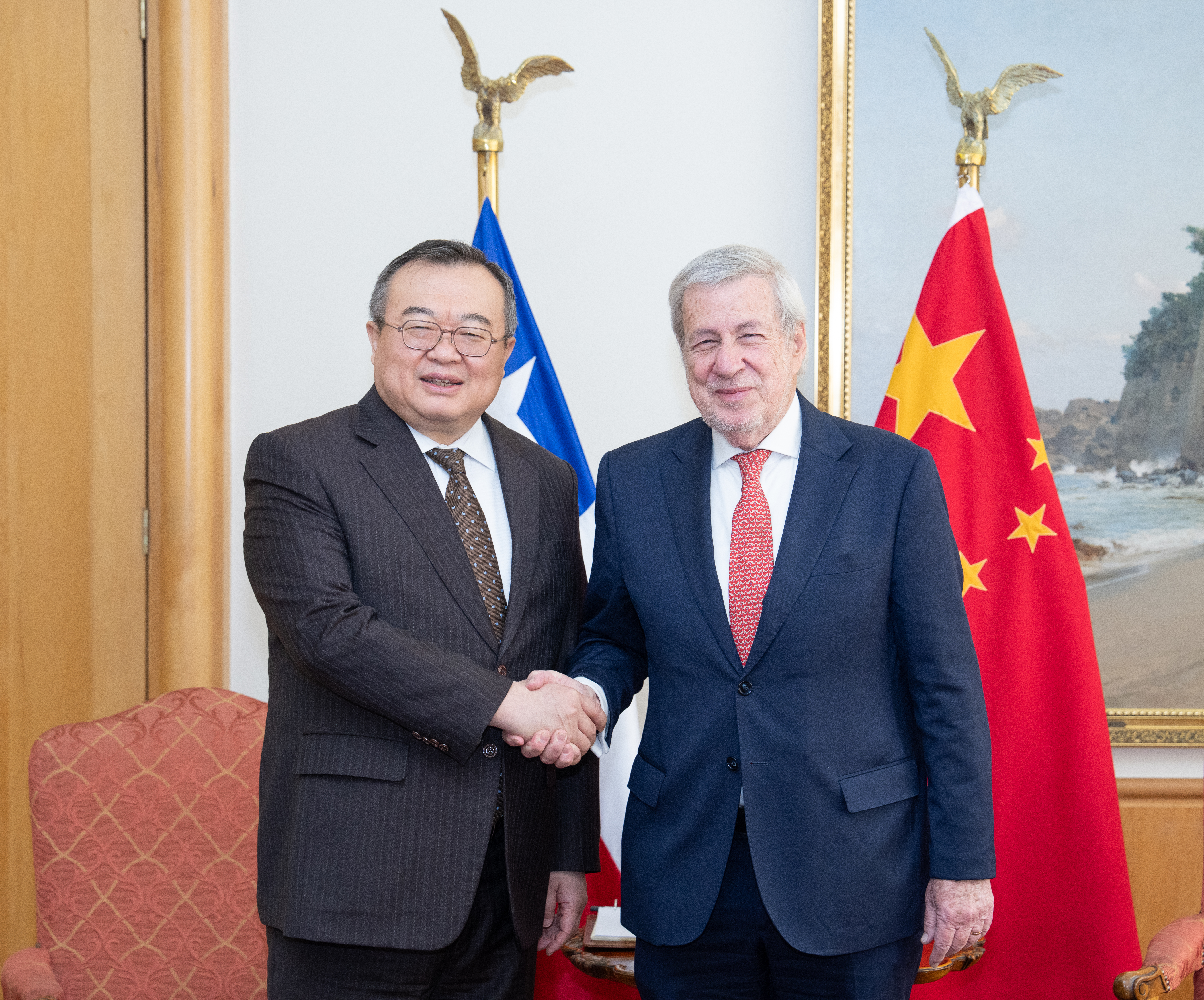 Liu said, although China and Chile are far apart, people of the two countries share mutual understanding and affinity. Since the establishment of diplomatic relations, China-Chile relations have set many records and become a pace-setter for relations between China and Latin America. The Chinese side is ready to, together with the Chilean side, implement the important consensus reached by President Xi Jinping and President Gabriel Boric, deepen strategic communication and political mutual trust, continue to firmly support each other on issues involving respective core interests and major concerns, promote the integration of the Belt and Road Initiative with Chile's development strategy, expand and strengthen economic and trade cooperation, actively explore cooperation in emerging fields, intensify people-to-people and cultural exchanges, and push China-Chile comprehensive strategic partnership to a new level.