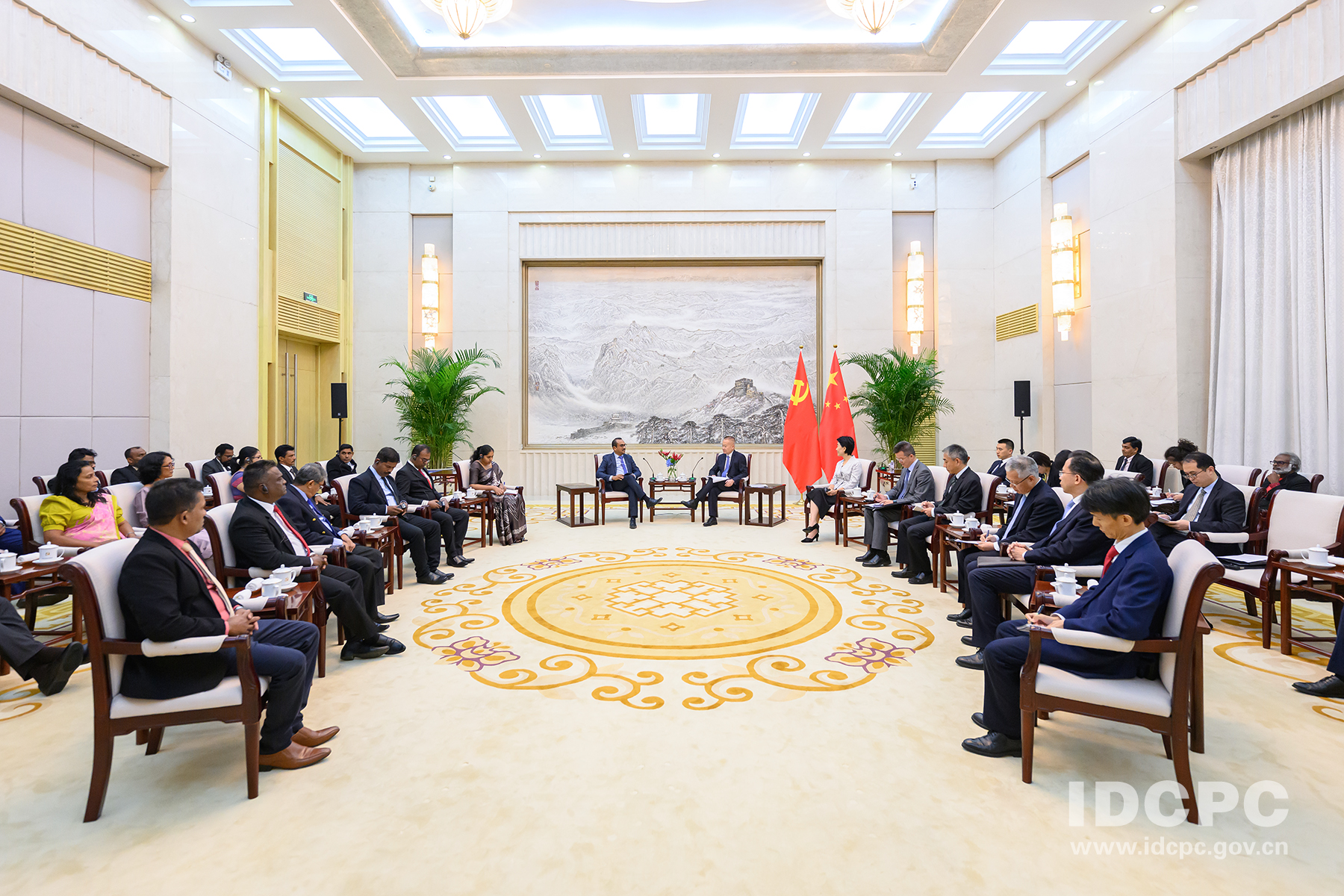 Beijing, October 17th—Liu Haixing, Minister of the International Department of the CPC Central Committee (IDCPC), met here today with a delegation of senior cadres of the Janatha Vimukthi Peramuna (JVP) from Sri Lanka led by Bimal Rathnayake, Member of the Political Bureau of the JVP and Minister of Transport, Highways, Ports and Civil Aviation of Sri Lanka.