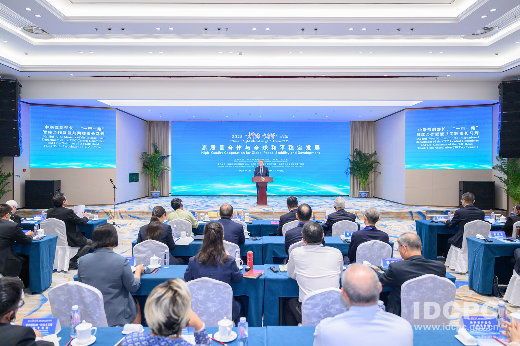 Beijing, September 12th—The "China in Sight, Global Insight" Forum 2025 was held here today. The forum, themed "High-Quality Cooperation for Global Peace, Stability and Development", was co-hosted by the International Department of the CPC Central Committee (IDCPC) and Renmin University of China, and co-organized by the China Center for Contemporary World Studies of the IDCPC and the Chongyang Institute for Financial Studies at Renmin University of China. Ma Hui, Vice-minister of the IDCPC and Co-Chairman of the Council of the Silk Road Think Tank Association (SRTA), Zhang Donggang, Party Secretary of Renmin University of China, Erika Farias, Vice President of the United Socialist Party of Venezuela, Adrian Severin, former Deputy Prime Minister and former Foreign Minister of Romania, and Gustavo Pacheco Villar, former President of the Andean Parliament and President of the International Institute of Governance of Peru, attended the opening ceremony and delivered speeches. More than 200 political leaders, think tank scholars and representatives from the business communities of 43 countries engaged in in-depth exchanges around the theme of the forum.