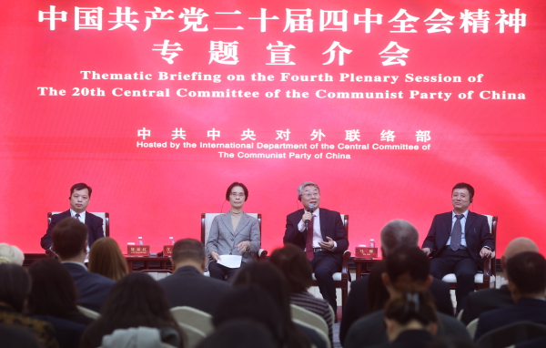 On November 17th, the International Department of the CPC Central Committee (IDCPC) hosted a thematic briefing on the spirit of the fourth plenary session of the 20th CPC Central Committee for international business communities in China. Over 160 foreign political leaders, representatives of foreign business associations, multinational companies in China, and economic and trade officials of some foreign embassies in China from the United States, the United Kingdom, the European Union, Switzerland, Japan, Singapore, Russia, Central and Eastern Europe, Latin America, Africa and other countries and regions attended the event. Ma Hui, Vice-minister of the IDCPC, Jiang Xiaojuan, former Deputy Secretary-General of the State Council and Professor at the University of Chinese Academy of Social Sciences, Liu Quanhong, Director of the Institute of Industrial Economy and Technological Economy of the National Development and Reform Commission, and Mei Xinyu, a researcher at the Chinese Academy of International Trade and Economic Cooperation of the Ministry of Commerce, introduced the main spirit of the plenary session and the key contents of the Recommendations of the Central Committee of the Communist Party of China (CPC) for Formulating the 15th Five-Year Plan for National Economic and Social Development to the foreign guests.