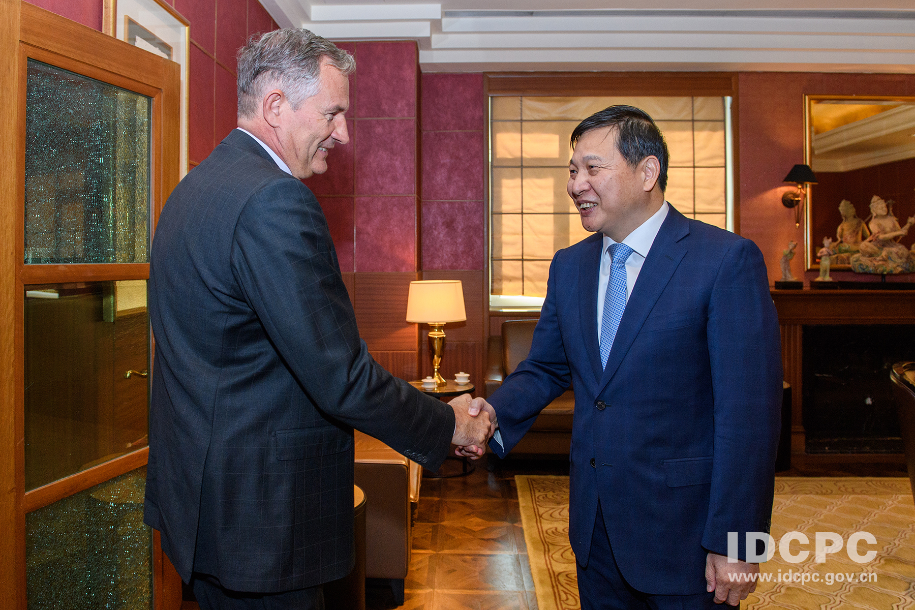 9月22日中午,中共中央对外联络部副部长钱洪山会见法国驻华大使罗梁。