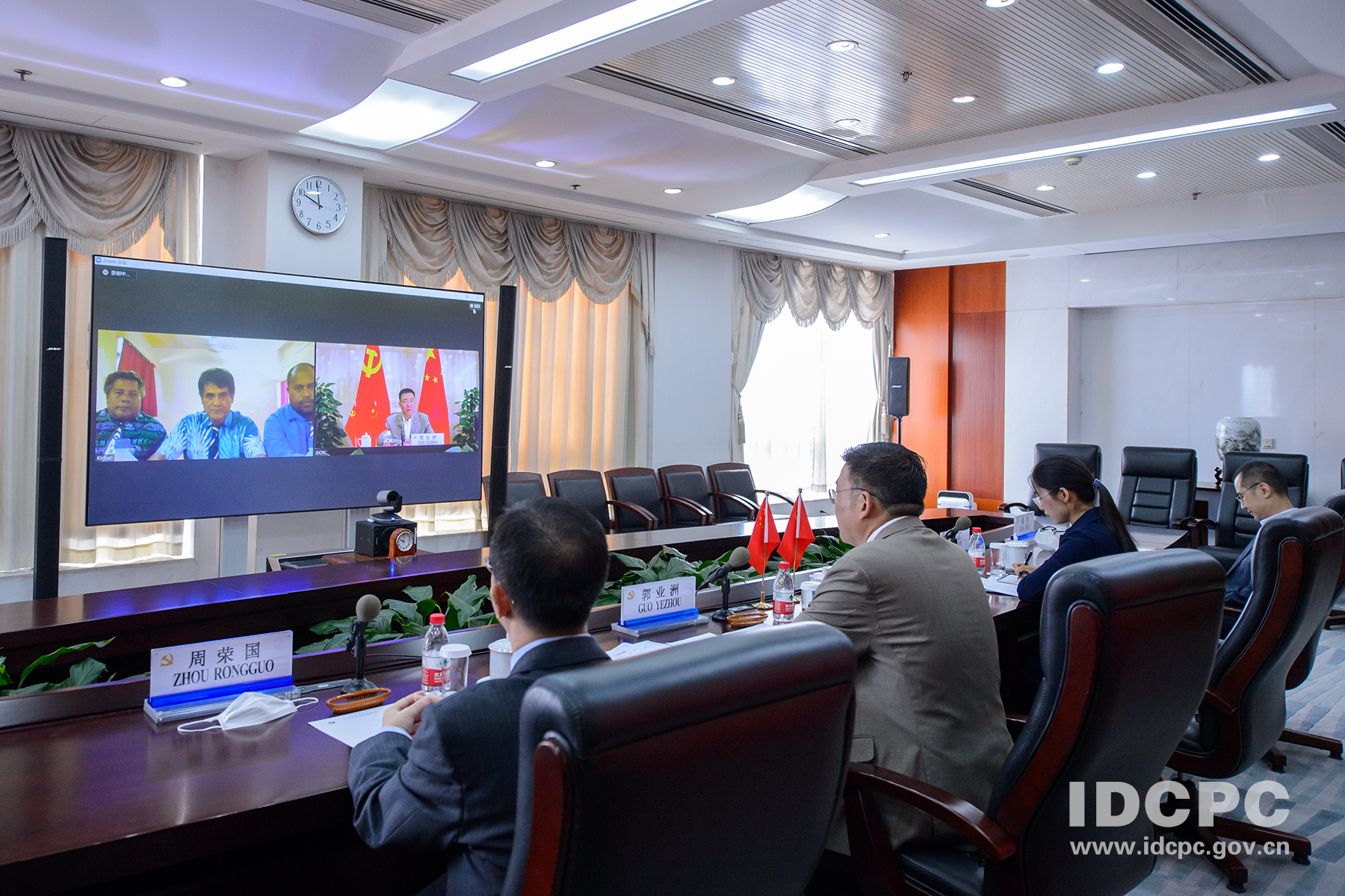 9月29日上午,中共中央对外联络部副部长郭业洲同基里巴斯关爱基里巴斯党主席雷德芬进行视频交流,中国驻基里巴斯大使唐松根等参加。