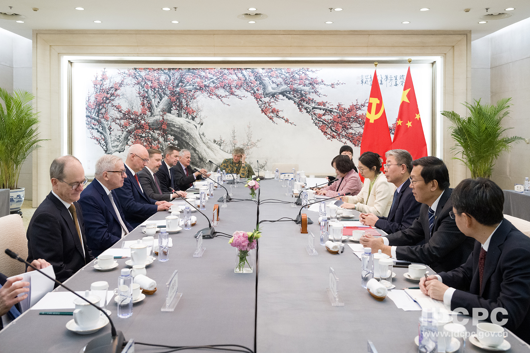 11月12日,中共中央对外联络部副部长马辉在北京会见由前主席古沛勤和现任主席吴思田共同率领的英中贸协代表团,英国驻华大使魏磊等参加会见。