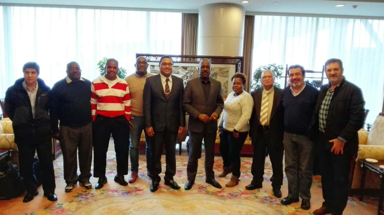 加勒比海三国安巴、多米尼克、特多代表和巴西、智利代表合影