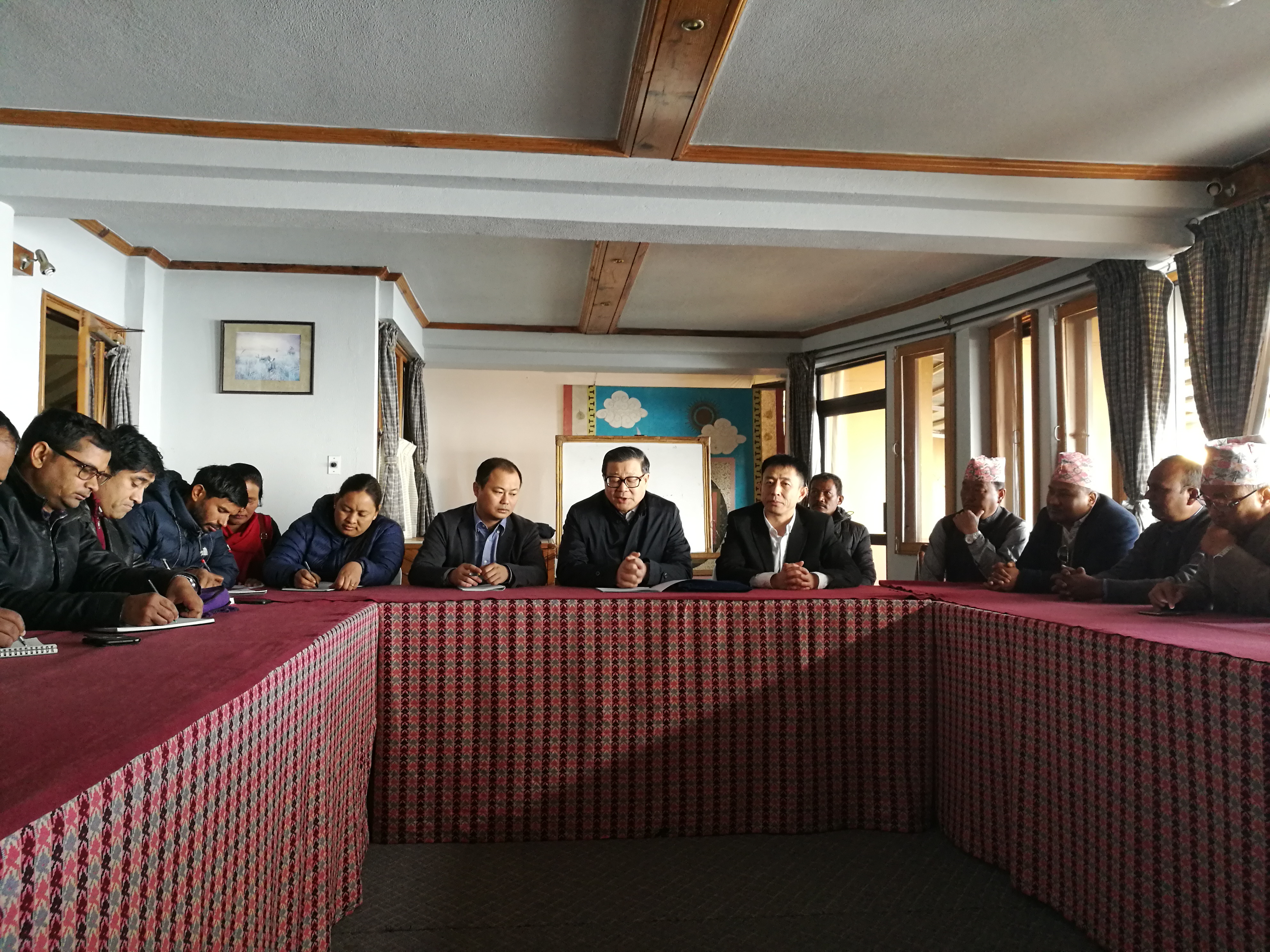 王伟光向尼泊尔左翼政党基层党员干部介绍十九大有关情况。