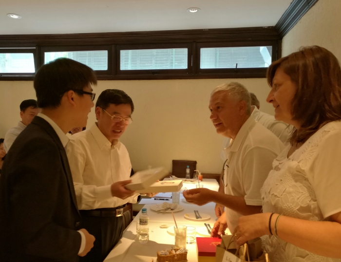 刘佳义向巴西劳工党领导人赠送《习近平谈治国理政》《十三五规划建议》。
