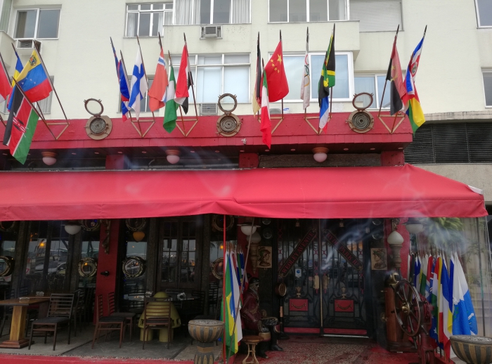 巴西里约热内卢市一家广受欢迎的餐厅的门上,中间一面五星红旗格外醒目。